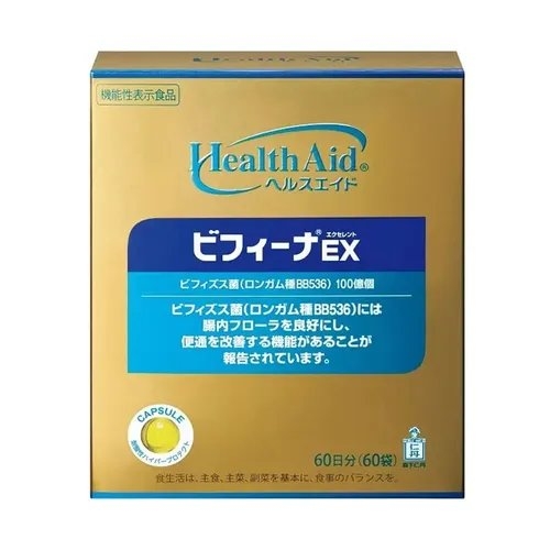 Thực phẩm bảo vệ sức khỏe Men vi sinh Bifina EX *Thành phần: – Lợi khuẩn Bifidobacterium Longum BB536: 10 tỷ ; Vi khuẩn sinh axit lactic (Lactobacillus): 1 tỷ; chất xơ (Oligosaccharides): 0.3g. – Phụ liệu: dầu ăn thực vật, erythritol, gelatin, tinh bột, chất nhũ hóa (lecithin), chất làm đặc (pectin), acidulant, hương liệu, chất tạo màu (cây dành dành, caroten), một phần nguyên liệu chứa gelatin, đậu nành, thành phần sữa. *Trọng lượng tịnh: 2g/gói, 60 gói / hộp. *Công dụng: – Giúp bổ sung vi khuẩn có lợi cho đường ruột. – Giúp cải thiện hệ vi sinh vật đường ruột, kích thích sự phát triển của các vi khuẩn có lợi, tốt cho hệ tiêu hóa. – Hỗ trợ quá trình tiêu hóa thức ăn, tăng cường hấp thu dưỡng chất, tăng cường sức đề kháng. Thực phẩm này không phải là thuốc, không có tác dụng thay thế thuốc chữa bệnh. Không sử dụng cho người có mẫn cảm với bất cứ thành phần nào của sản phẩm *Đối tượng sử dụng: Người bị rối loạn tiêu hóa, chướng bụng, đầy hơi, dùng kháng sinh kéo dài, viêm đại tràng, viêm đại tràng co thắt (hội chứng ruột kích thích) chức năng tiêu hoá kém, hấp thụ kém, táo bón, ăn không tiêu do loạn khuẩn đường ruột và người cần tăng cường sức đề kháng. * Hướng dẫn sử dụng và bảo quản: Chú ý: Uống với nước nguội KHÔNG NHAI, CHỈ NUỐT, để tránh làm vỡ màng bảo vệ lợi khuẩn, dùng ngay sau khi mở gói, bảo quản nơi khô ráo, tránh ánh nắng mặt trời, đậy nắp hộp sau mỗi lần sử dụng. Trẻ em từ 3 tuổi trở lên: 1gói/ngày Người lớn bị rối loạn tiêu hóa, chướng bụng, đầy hơi, dùng kháng sinh kéo dài, hấp thu kém, ăn không tiêu: 1-3 gói/ngày. Thời gian sử dụng 1-3 tháng Người lớn bị viêm đại tràng, viêm đại tràng co thắt (hội chứng ruột kích thích), chức năng tiêu hoá kém, người cần tăng cường sức đề kháng: 2-3 gói/ngày. Thời gian sử dụng 3-6 tháng