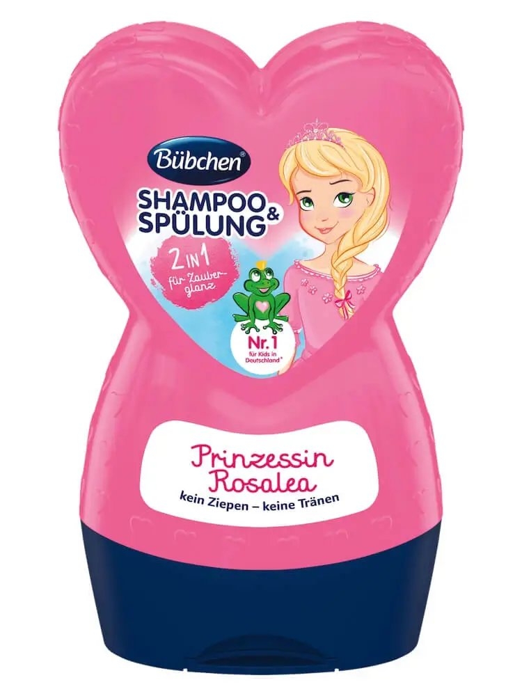 Dầu gội xả Bubchen Shampoo & Spulung Prinzessin Rosalea 2in1 cho bé gái, giúp làm sạch và chăm sóc tóc mềm mại. Với các thành phần tự nhiên, cung cấp độ ẩm chuyên sâu và đặc biệt dịu nhẹ với da của trẻ. Không gây cay mắt. Bao bì hình trái tim độc đáo và hương thơm mê hoặc, đảm bảo cho bé niềm vui khi gội đầu và mái tóc mềm mượt.