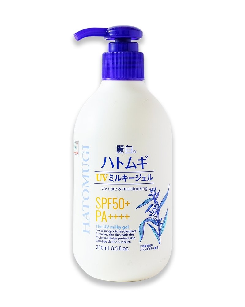 👉Hatomugi The UV Milky Gel SPF 50+/ PA++++ với thành phần chính chiết xuất từ hạt ý dĩ thiên nhiên, chứa dưỡng chất và vitamin 2in1 vừa có tác dụng làm kem dưỡng ẩm, dưỡng trắng da vừa có tác dụng là kem chống nắng.