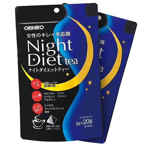 Trà Giảm Cân Trà Night Diet Tea ORIHIRO Thương hiệu: Orihiro Xuất xứ: Nhật Bản Nơi sản xuất: Nhật Bản Kết cấu: Dạng túi trà Đặc tính: Ban đêm Dung tích: 16 gói, 20 gói, 24 gói Giới tính: Trà giảm cân Orihiro dùng cho nam và nữ Đối tượng sử dụng: Người có nhu cầu giảm cân an toàn, lành mạnh Thu gọn.. Thành phần của sản phẩm trà giảm cân Night Diet Tea Cỏ Ngọt, Rooibos, Muồng Trâu, Hoa Cúc, Bột Gừng, Glycine, Citrulline, Ornithine, Arginine, Lysine Hướng dẫn sử dụng sản phẩm trà giảm cân Night Diet Tea Lấy 1 gói trà giảm cân Night Diet Tea pha cùng khoảng 200-250ml nước sôi, sau 3 phút có thể thưởng thức. Bạn nên uống từ 1-2 gói/ ngày ***Lưu ý: Không sử dụng sản phẩm cho người dưới 18 tuổi Không sử dụng cho phụ nữ mang thai và đang cho con bú. Sản phẩm trà giảm cân Night Diet Tea không phải là thuốc, không có tác dụng thay thế thuốc chữa bệnh